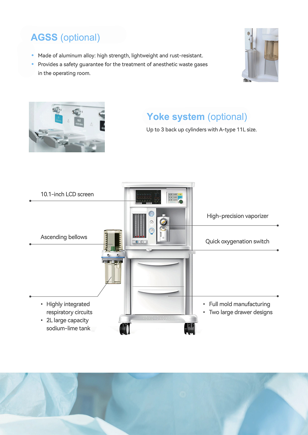 2.Yoke system(Pin-index): Support 11L cylinder O2, N2O