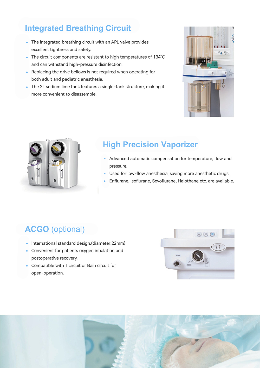 The integrated breathing circuit with an APL valve provides excellent tightness and safety.