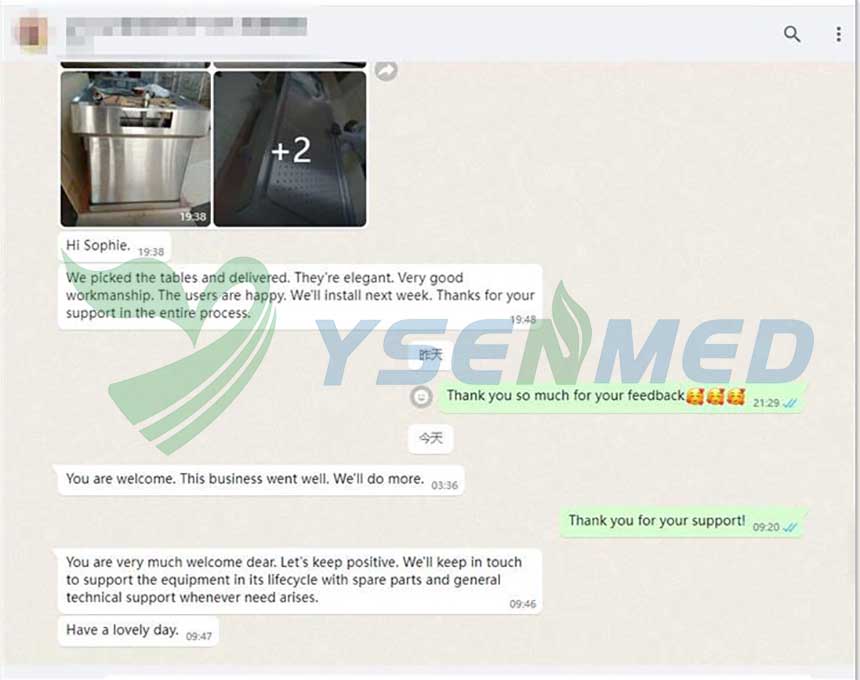 Kenyan customer has given us good feedbacks after he delivered the autopsy tables YSJPT20A & YSJPT10A to the end user, who highly approved our products for the elegant design and fine workmanship.