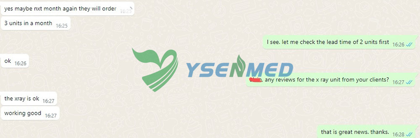 Good feedbacks from Philippinese client, who is satisfied with YSENMED 5.6kW portable x-ray unit YSX056-PE.
