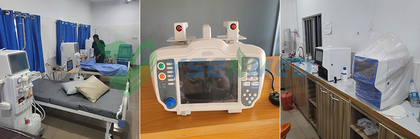 YSENMED medical equipment including digital x-ray system YSDR500-B1, color ultrasound system YSB-S7, video endoscope system YSVME-200, hemodialysis machine YSHDM2008, defibrillator monitor YS-DM7000, 5-part hematology analyzer YSTE5000A, 3-part hematology YSTE320A, electrolyte analyzer YSTE-300GE and other lab equipment have been set up in a hospital in Nigeria.