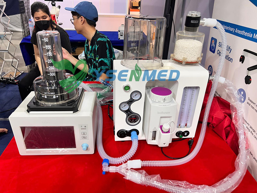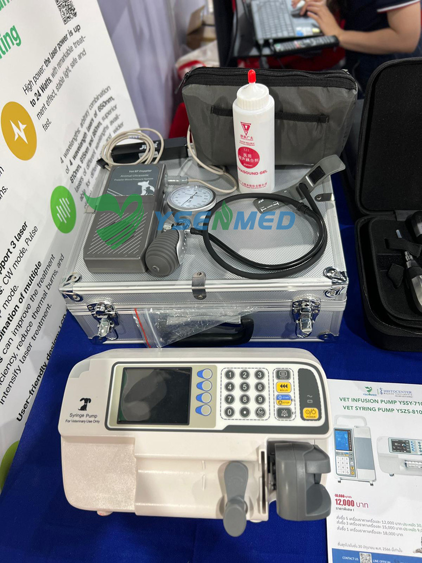 YSENMED veterinary equipment including portable vet anesthesia machine YSAV600PV, vet BP doppler monitor YSDBP100V, vet infusion pump YSSY-710V, vet syringe pump YSZS-610V, etc, exhibited at the 15th VPAT Regional Veterinary Congress in Thailand.