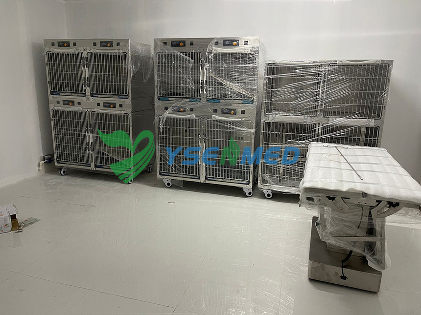 YSENMED veterinary surgical equipment including vet operation table YSVET0504, vet anesthesia machine YSAV600PV, surgical lamp YSOT05L, vet patient monitor YSPM80V, vet oxygen generator YSOCS-5D, veterinary cage YSVET1220C and other equipment have been set up in a vet clinic in Philippines.