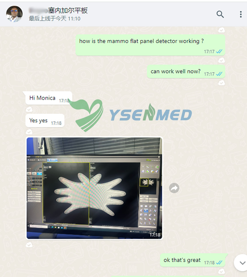 Doctor from Senegal upgraded his mammography system with YSENMED YSFPD-R1012C mammo flat panel detector, which is working well.