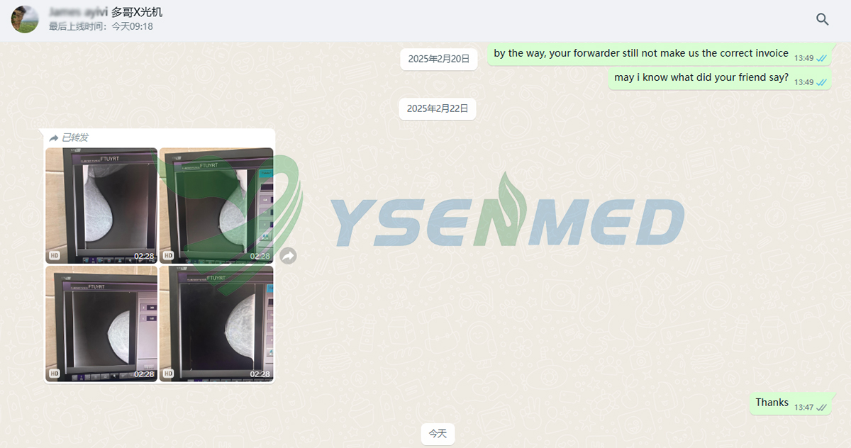 Doctor James from Togo has upgraded his analog mammography x-ray machine with YSENMED YSFPD-R1012C mammo flat panel detector,and the panel works well in image capture.