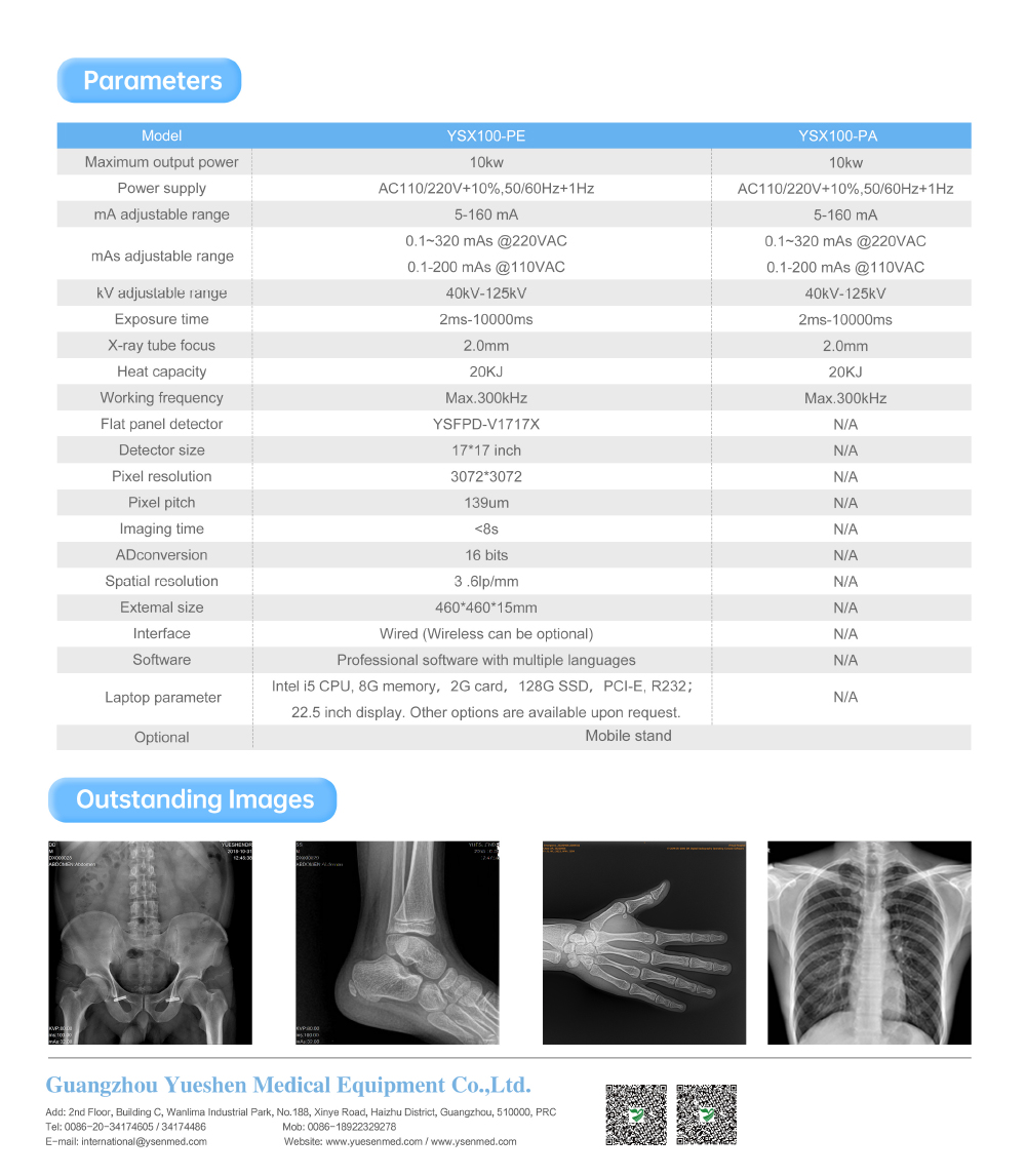 YSENMED YSX500D (YSF50DR-B3) 50kW 630mA Medical Digital X-ray System