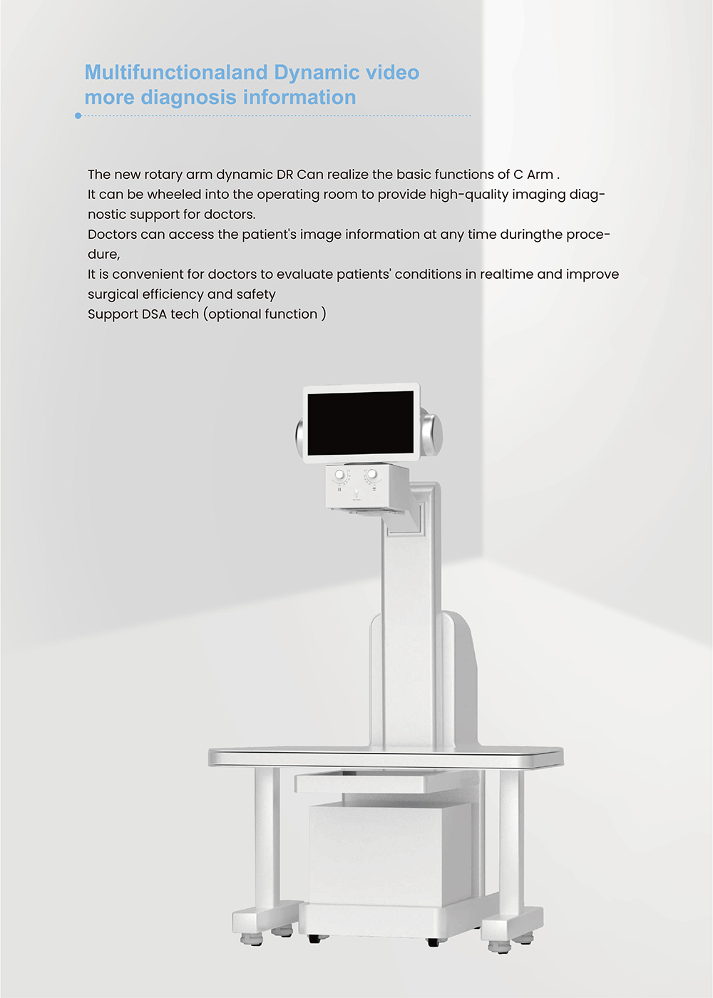 The new rotary arm dynamic DR Can realize the basic functions of C Arm. It can be wheeled into the operating room to provide high-quality imaging diagnostic support for doctors.