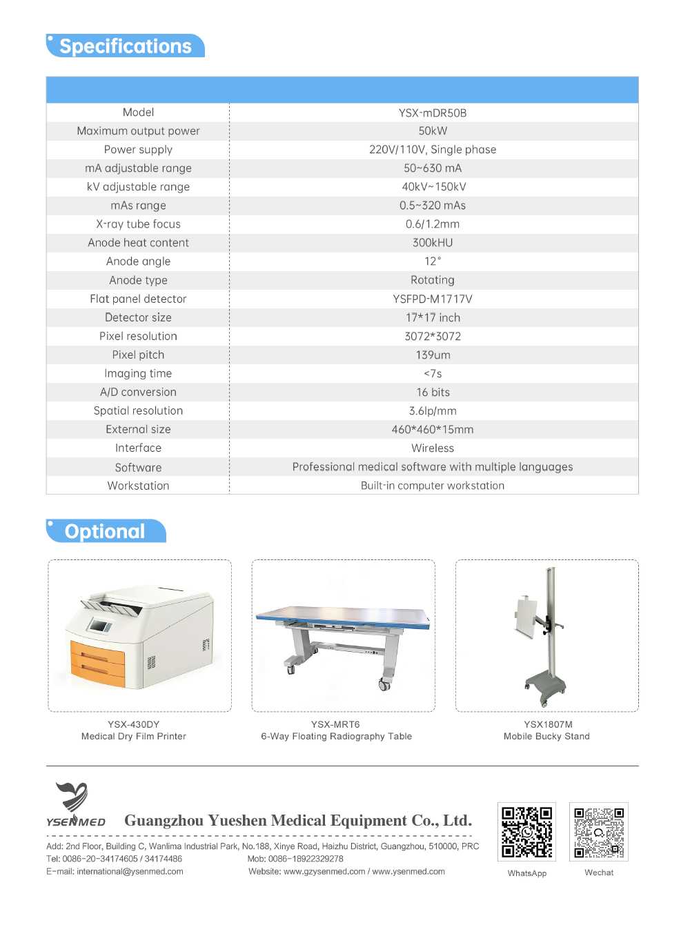 YSENMED 50kW Mobile Digital X-ray System