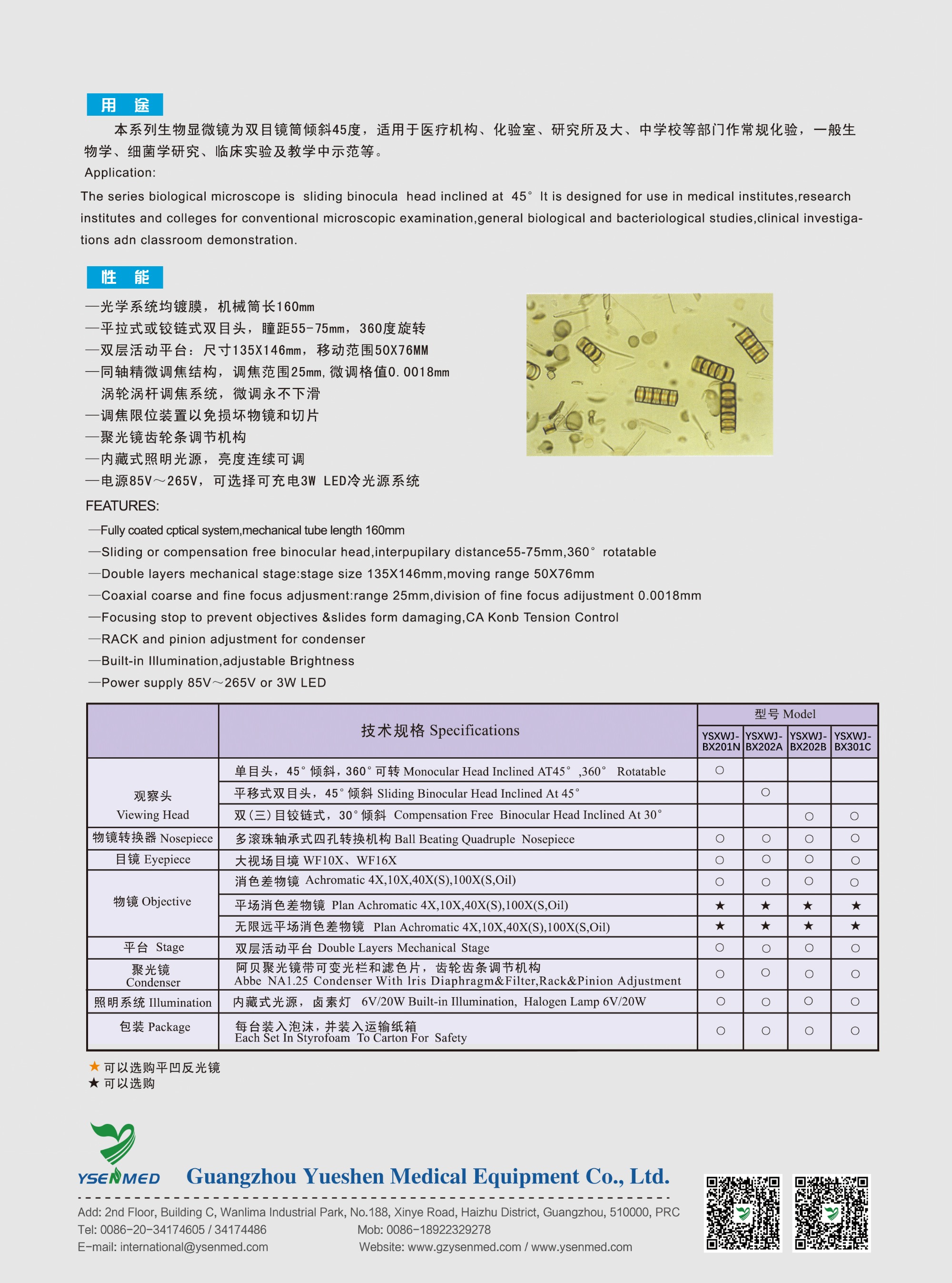 The series biological microscope is a sliding binocular head inclined at 45°.