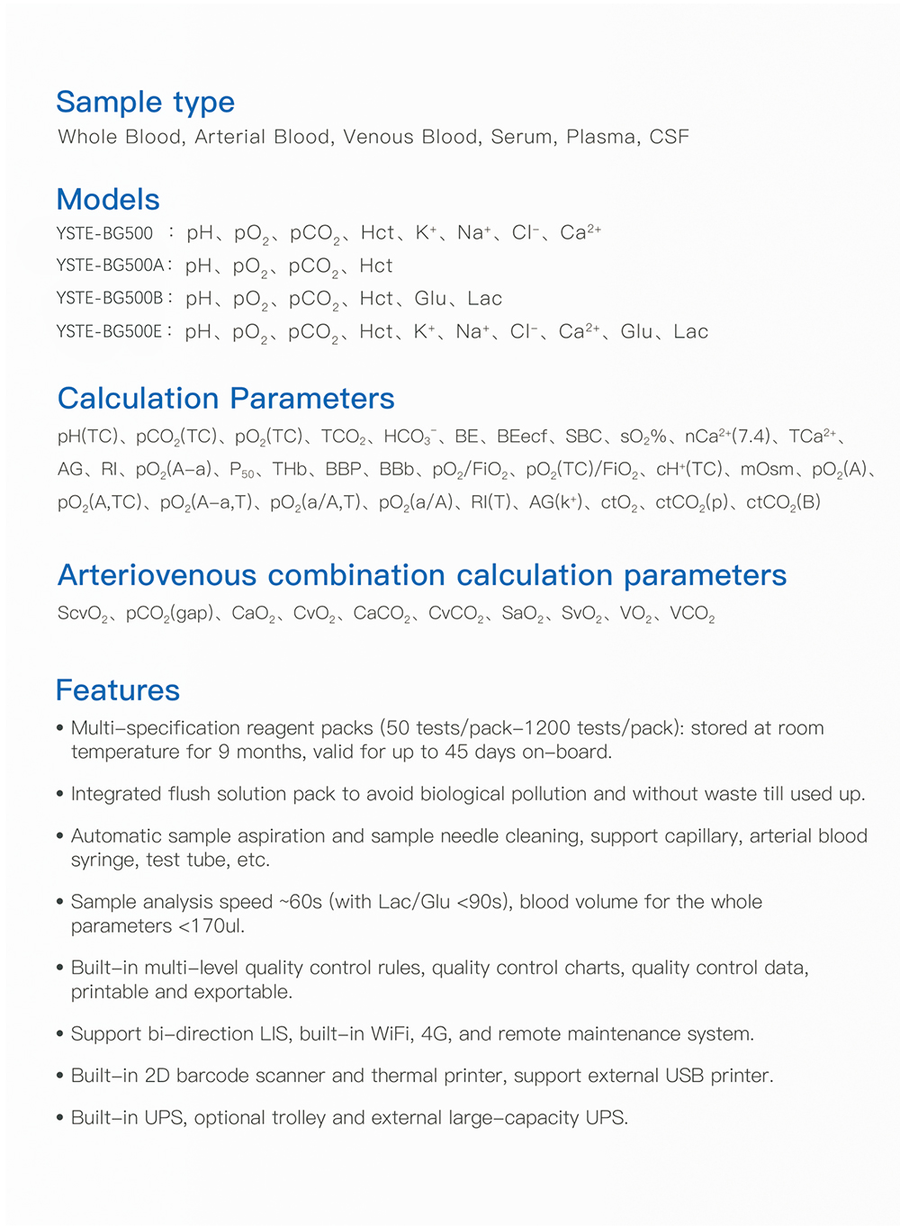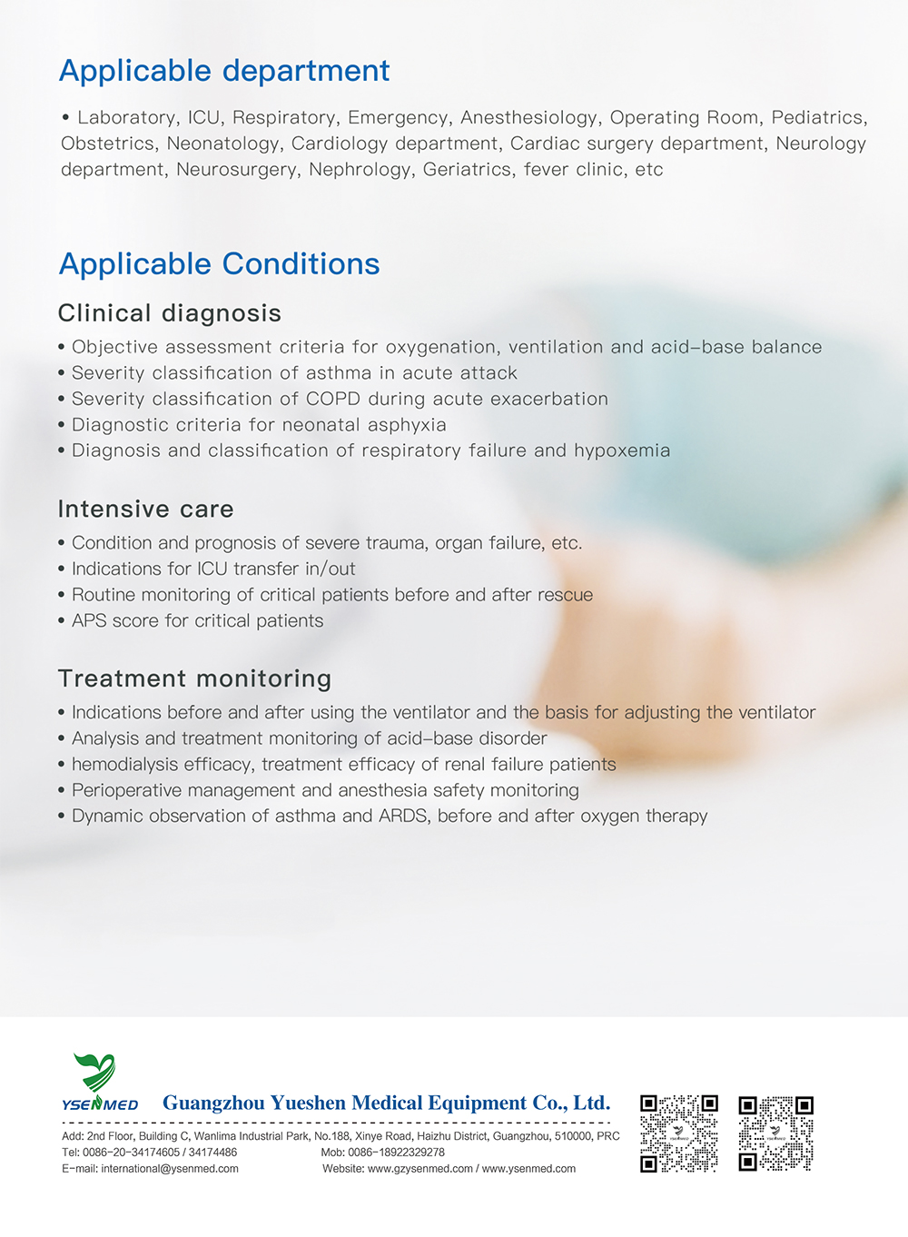 4. Support the combination test of arterial and venous blood to provide more clinical parameters.