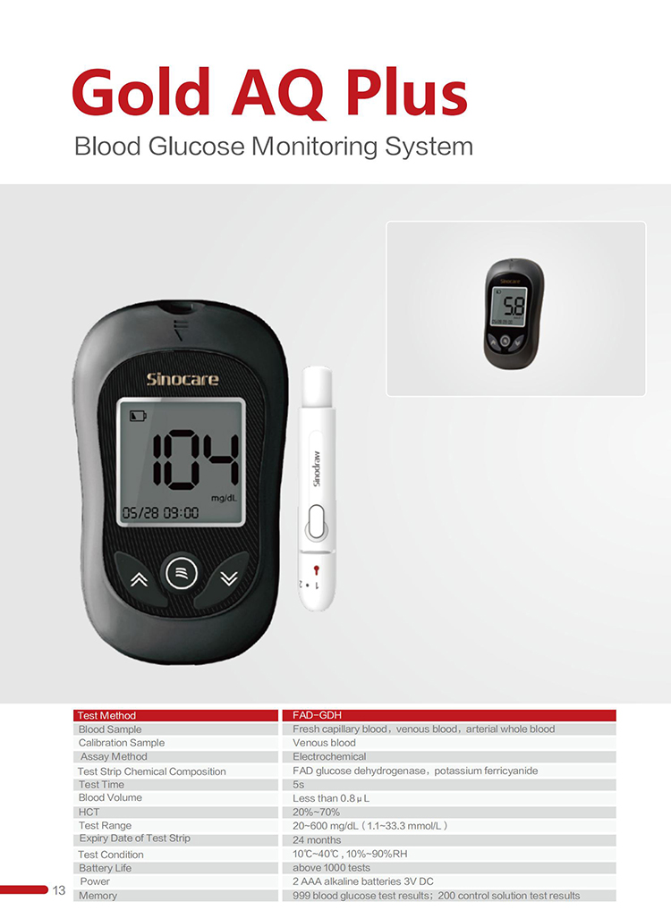 Blood Glucose Monitoring System Gold AQ Plus
