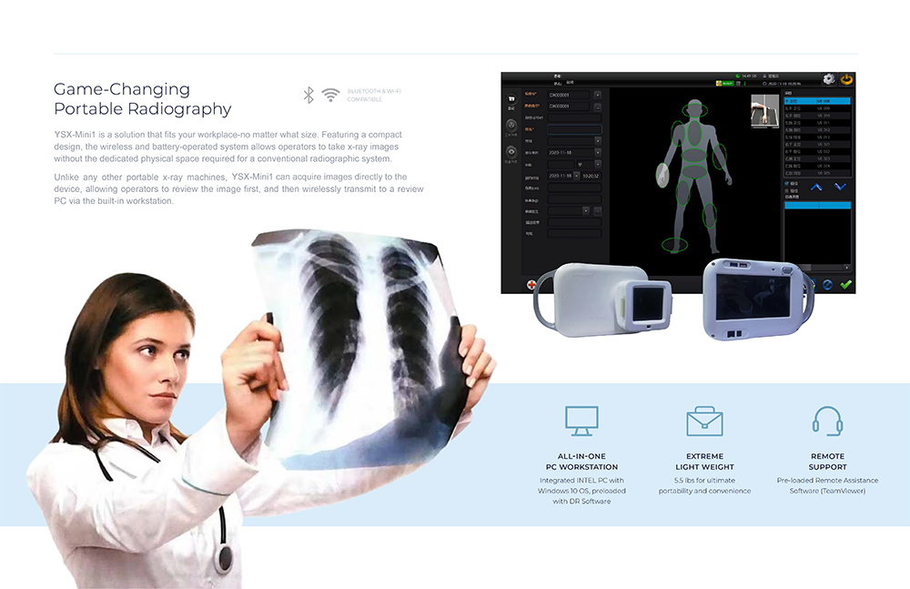 YSX-Mini1 is a stationary x-ray imaging system used to acquire radiographic imagesof different parts of the human body in a clinical setting.