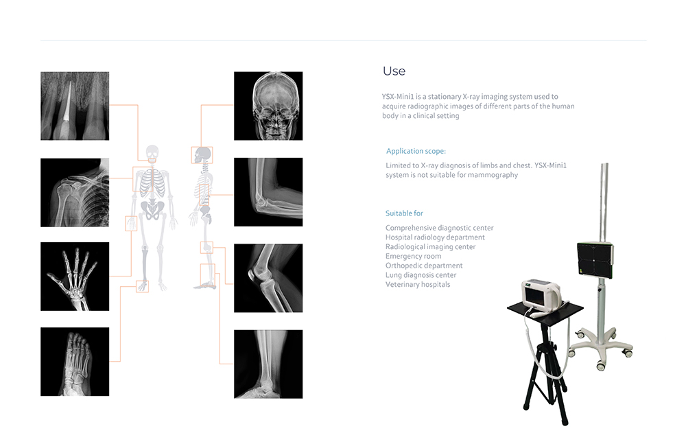 Limited to X-ray diagnosis of limbs and chest.YSX-Mini1 system is not suitable for mammography.