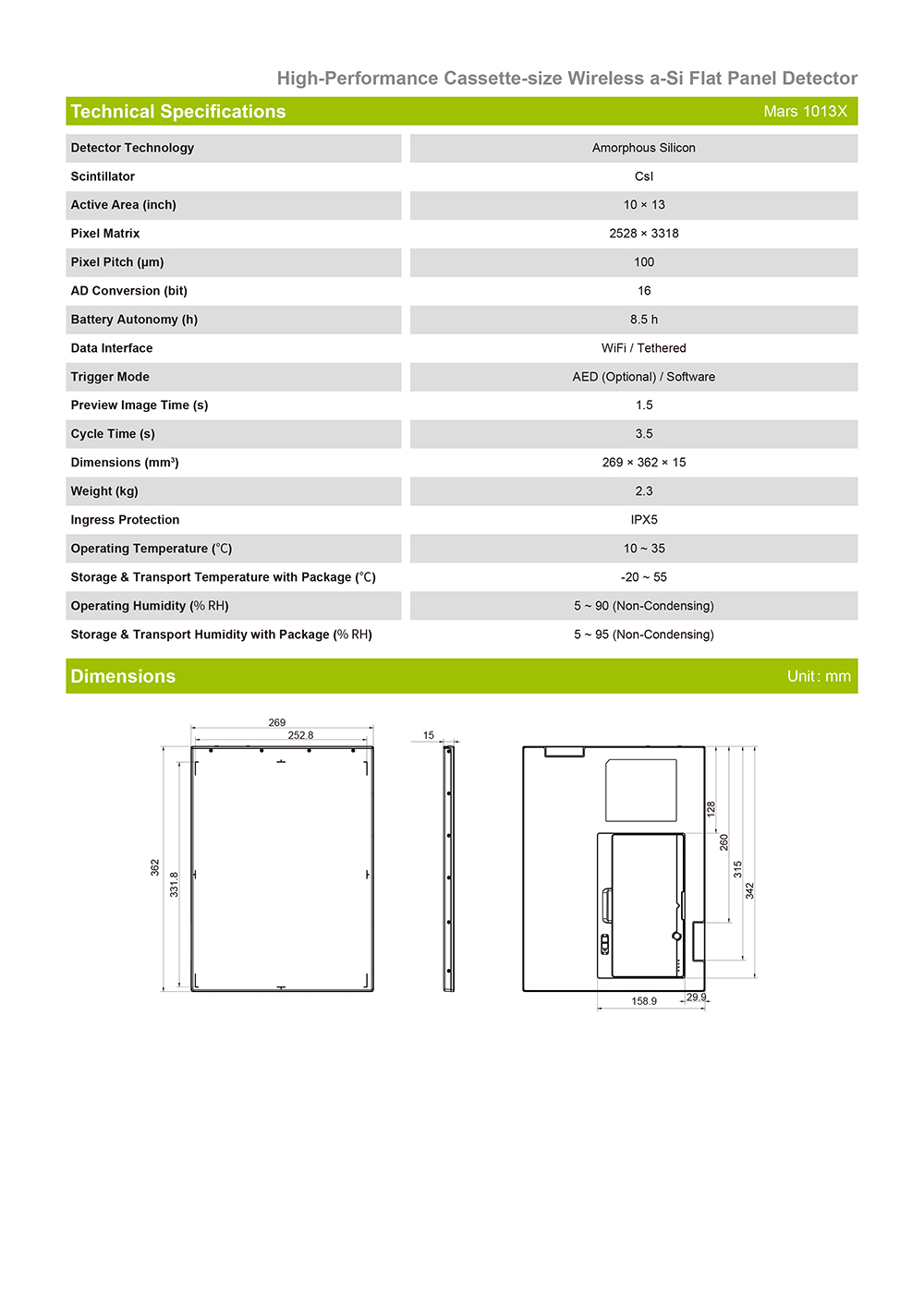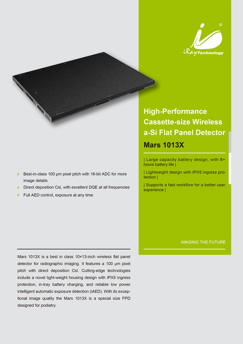 High-Performance Cassette-size Wirelessa-Si Flat Panel Detector Mars 1013X