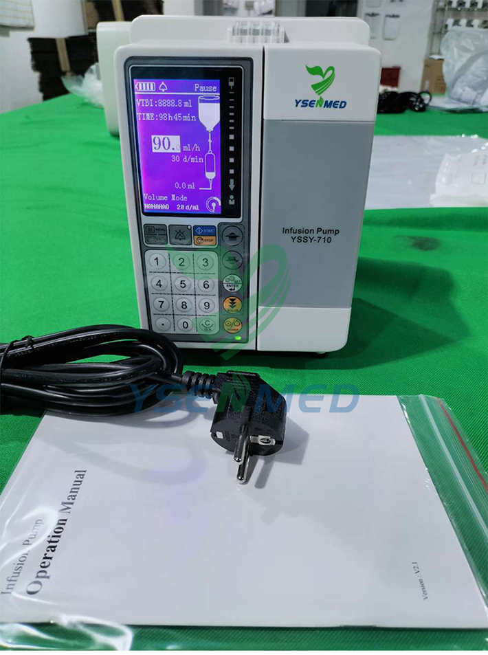 Rechargeable Lithium battery, DC11.1V,3000mAh;operating time: ≥10h @25ml/h, displaying remaining battery |