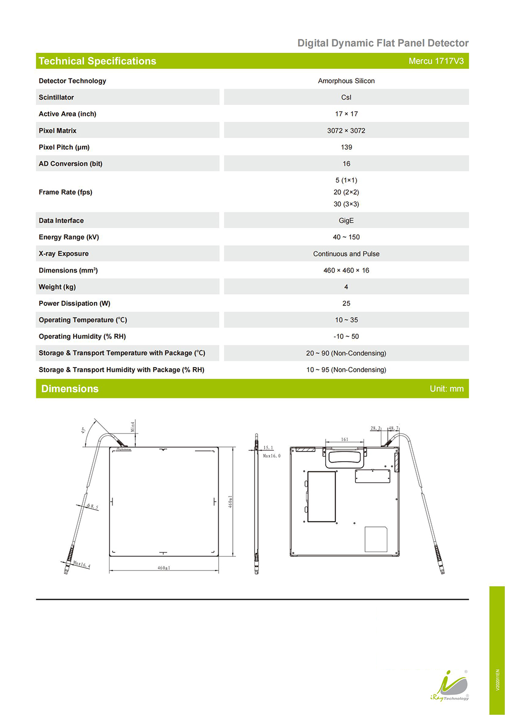 Iray Mercu 1717V3 Real-time Dynamic Flat Panel Detector