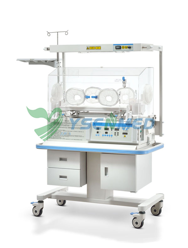 Configured with fixed neonate bilirubin phototherapy equipment with SMD LED blue lights under the bassinet;