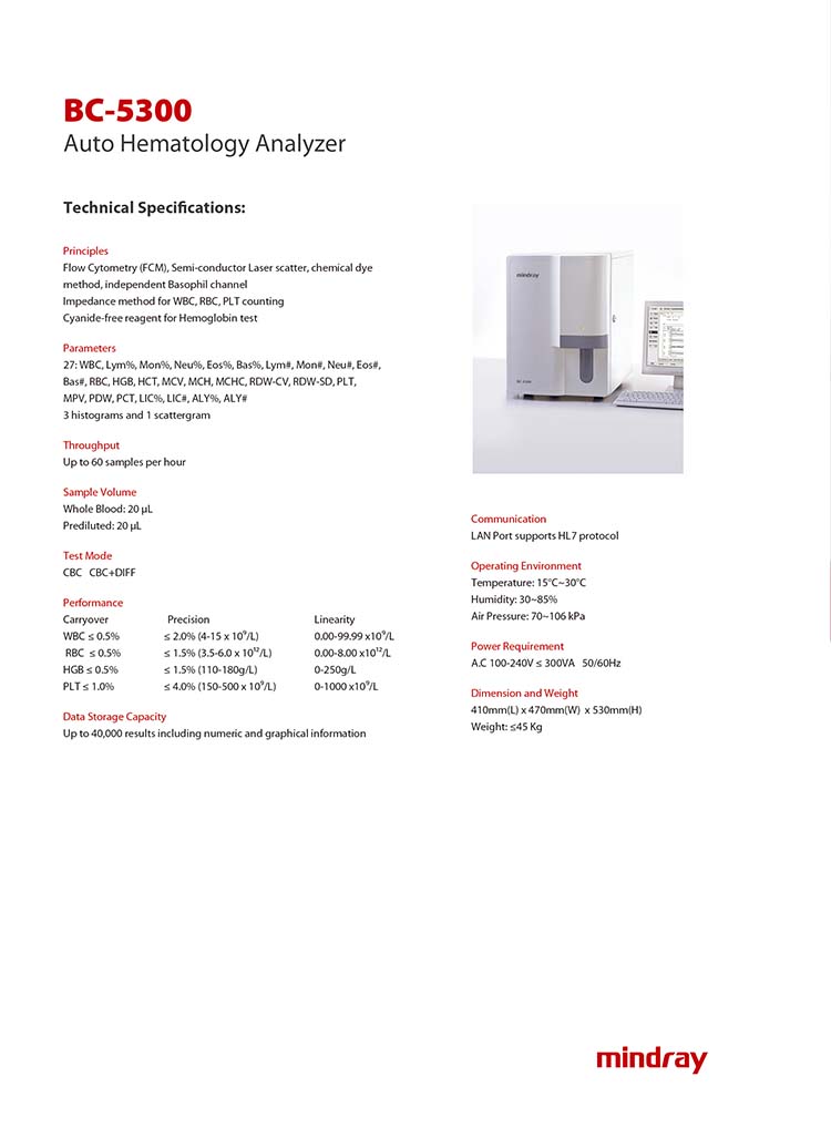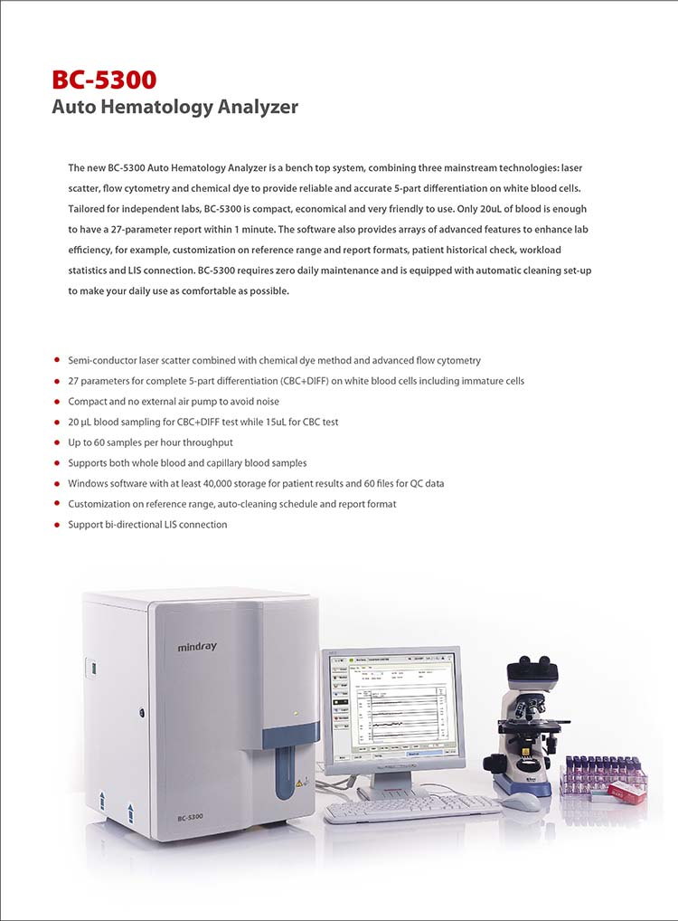 Tailored for independent labs, BC-5300 is compact, economical and very friendly to use.