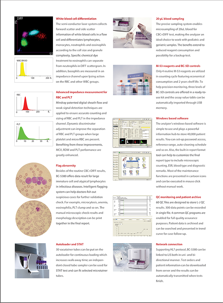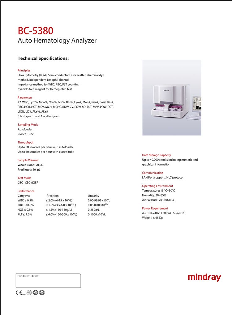 MINDRAY BC-5380 5 Part Diff CBC Auto Blood Hematology Analyzer