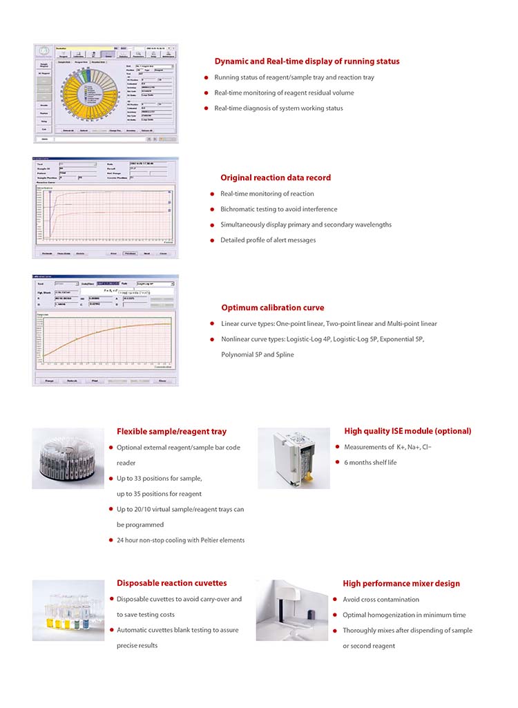 A bench-top, discrete and random access clinical chemistry analyzer offering 100 tests per hour.