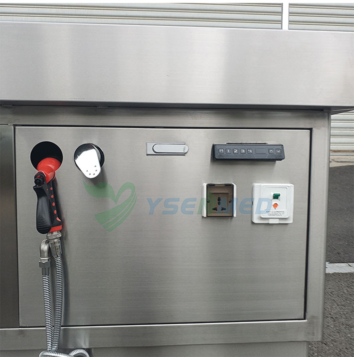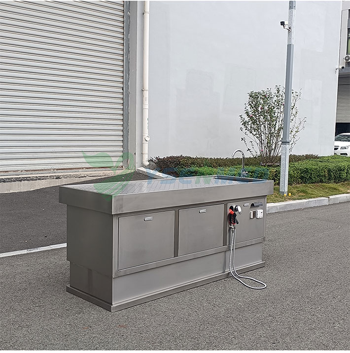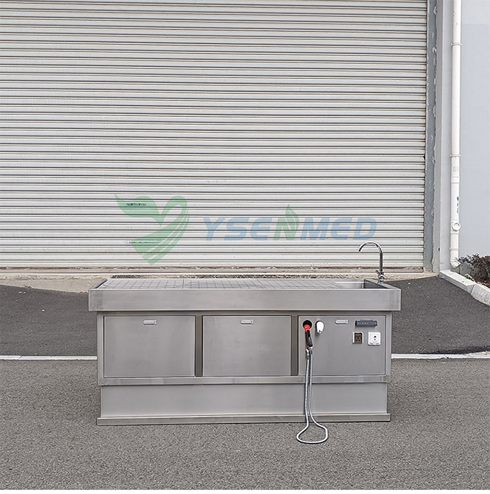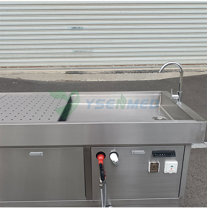 With a grinder underneath for disposing the waste, which will be drained away.A movable tray over the table for organs can be optional.