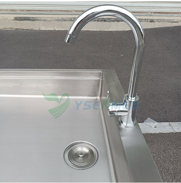 The sink is equipped with a hair isolator to prevent from entering the drainage pipe.The Table has a manual sensor faucet, hot and cold water temperature adjustable.With movable spray water gun, pressure adjustable,easy to flush the dirt.
