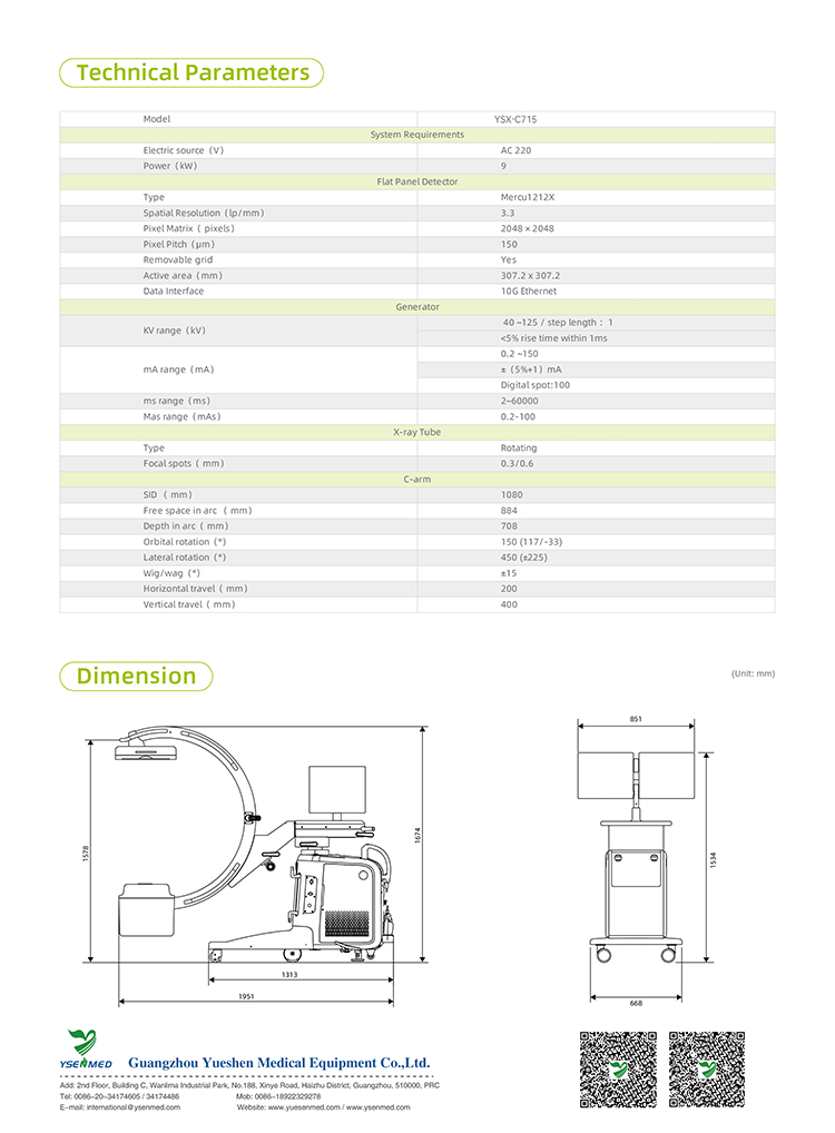 15kW Flat Panel Detector Digital C-arm X-ray system YSX-C715