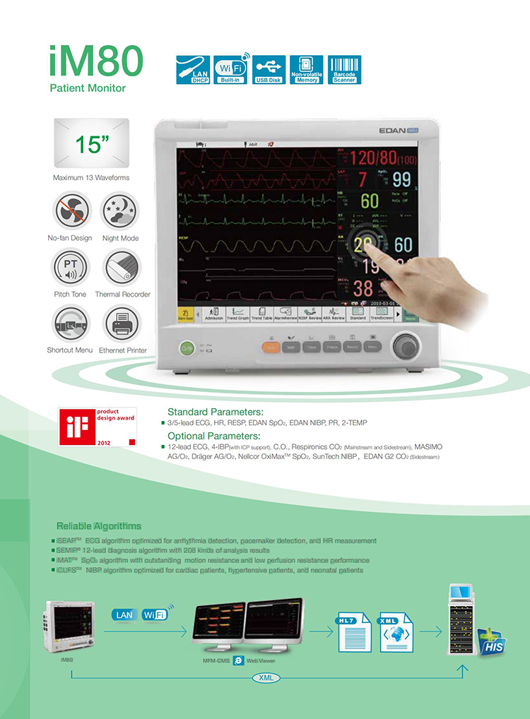 Multi-parameter Patient Monitor with 15 Inch Screen Edan iM80