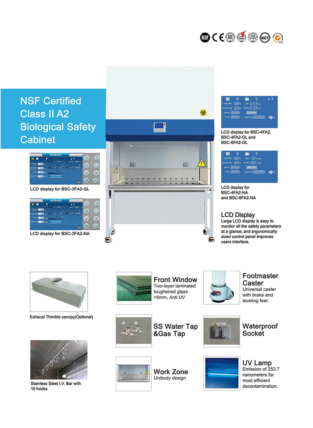 Three protection: operator, sample and environment. Airflow system: 70% air recirculation, 30% air exhaust A2 Cabinet is suitable for working with microbiological research in the absence of volatile or toxic chemicals and radionuclide.