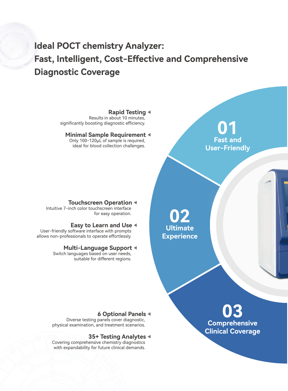 By utilizing microfluidic technology, the biochemistry and electrolyte testing cycle can be shortened to 10 minutes, with a sample requirement reduced to just 100-120 uL. This allows non-professionals to operate the system and obtain accurate results, ultimately saving patients' time and lowering diagnosis and treatment costs.
