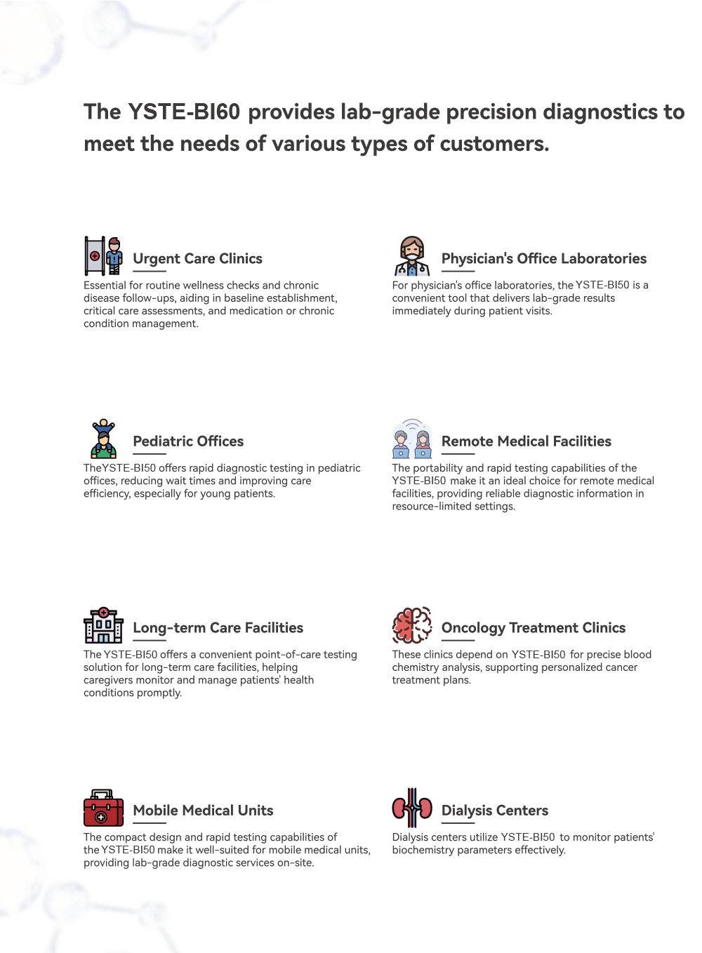 Covering comprehensive chemistry diagnostics with expandability for future clinical demands.
