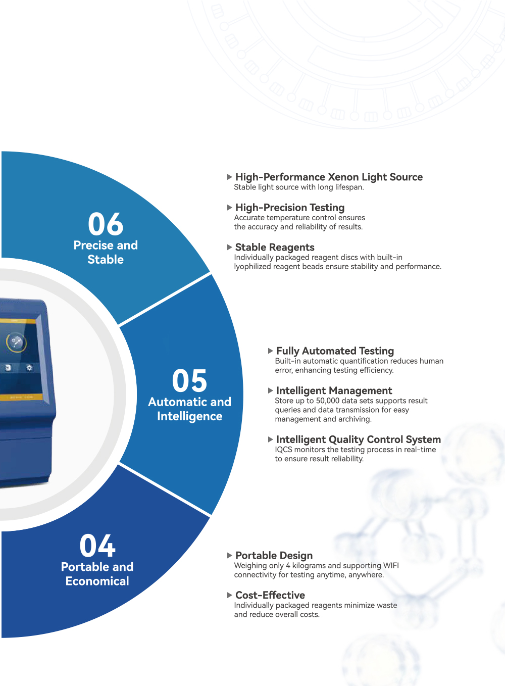 Weighing only 4 kilograms and supporting WIFI connectivity for testing anytime, anywhere.