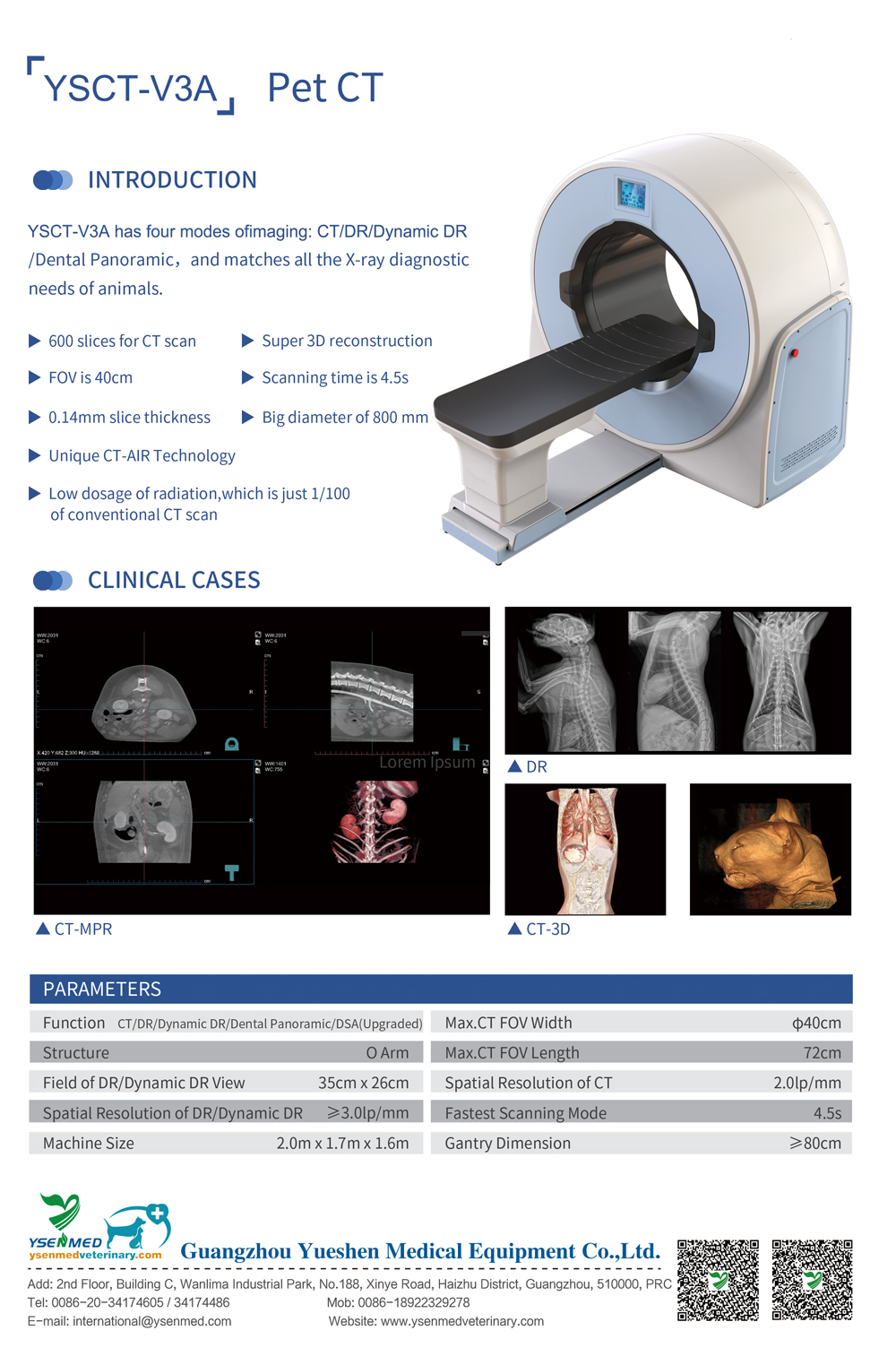 YSCT-V3A has four modes of imaging: CT/DR/Dynamic DR/Dental Panoramic, and matches all the X-ray diagnostic needs of animals.