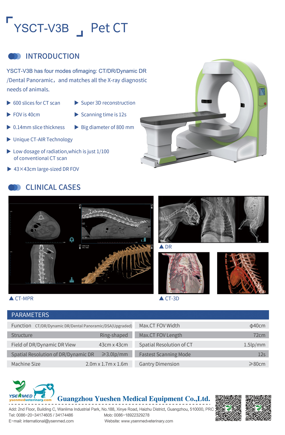 YSCT-V3B has four modes of imaging: CT/DR/Dynamic DR/Dental Panoramic, and matches all the X-ray diagnostic needs of animals.