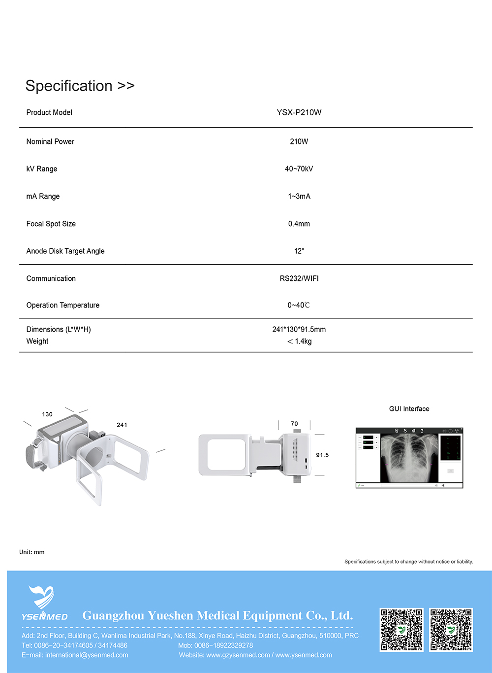 YSENMED 210W 3mA Medical Handheld x-ray Unit