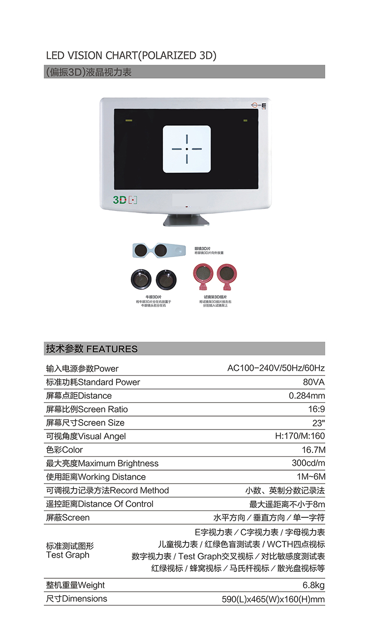 YSENMED Medical Ophthalmic LED Vision Chart Monitor YSENT-VC20A