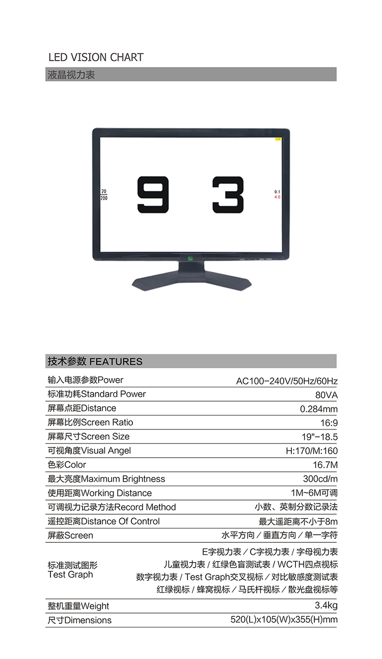 YSENMED Medical Ophthalmic LED Vision Chart Monitor YSENT-VC20C