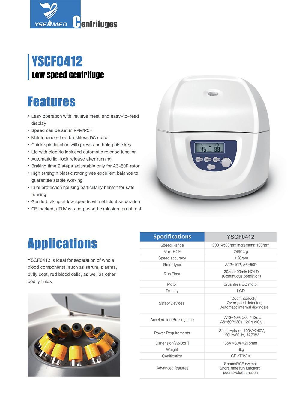 YSENMED YSCF0412 Medical Laboratory Multi-Purpose Low Speed Centrifuge