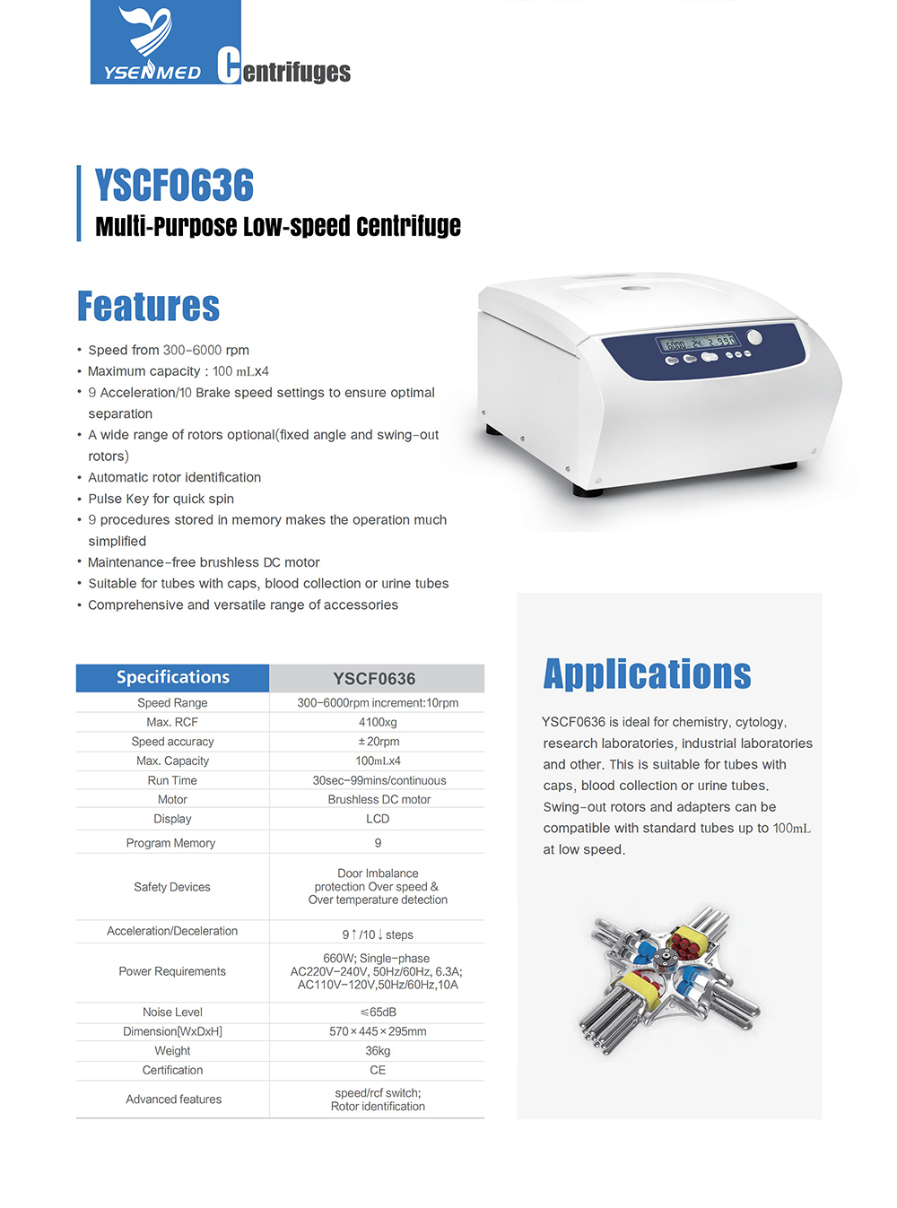 YSENMED YSCF0636 Medical Clinical Lab Multi-Purpose Low Speed Centrifuge