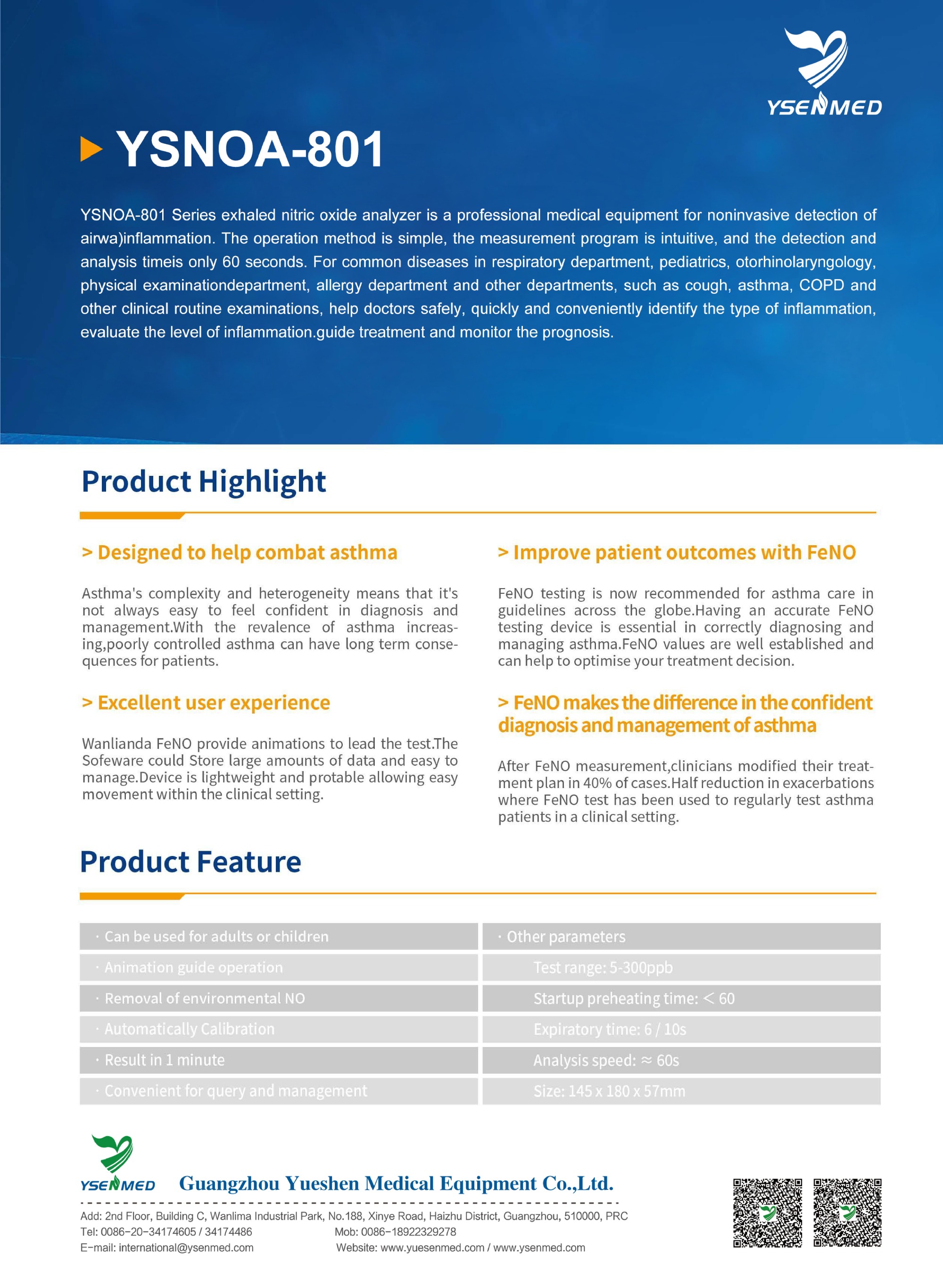 YSNOA-801 FeNO provide animations to lead the test.The Sofeware could Store large amounts of data and easy to manage. Device is lightweight and protable allowing easy movement within the clinical setting.