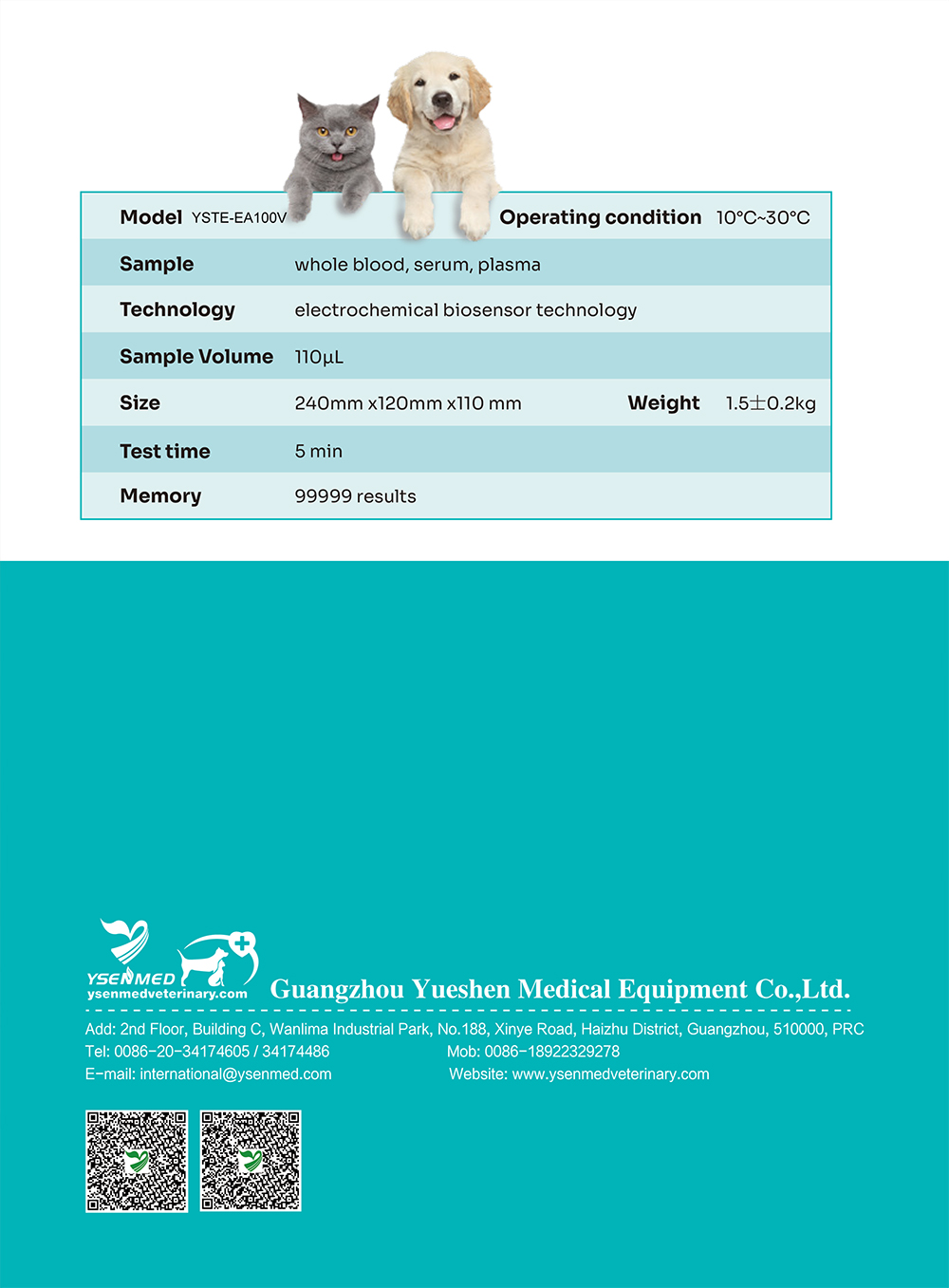 YSENMED YSTE-EA100V Handheld Veterinary Electrolyte Analyzer